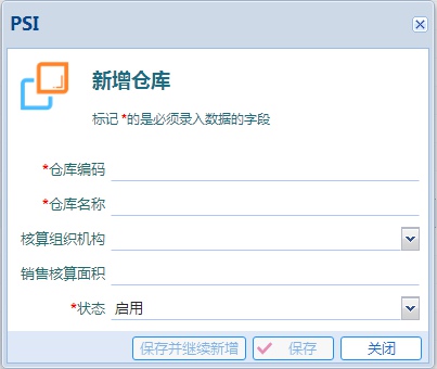 录入完仓库编码,在输入框里按回车键会自动跳转到仓库名称输入框,在仓库名称录入完后继续跳转,在销售核算面积按回车键会自动触发保存并继续新增按钮的单击功能。