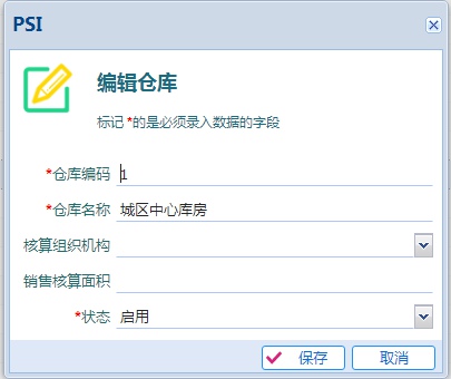在仓库列表中选中仓库,然后单击按钮,系统会弹出表单来修改仓库数据域。